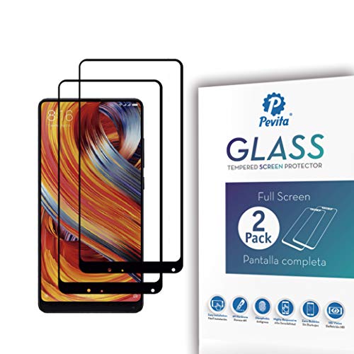 Pevita Pellicola Protettiva Xiaomi Mi Mix 2 [2 Packs] Full Screen. Durezza 9H, Senza Bolle, Facile Installazione. Pellicola Protettiva di Vetro Temperato per Xiaomi Mi Mix 2