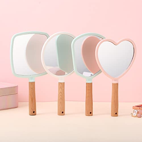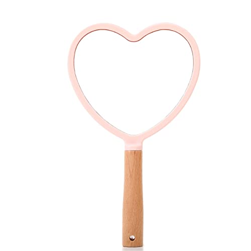 PEVSCO Specchietti a mano piccoli con manico in legno, cuore/rotondo/quadrato/settore, per viaggi, bagno, regalo da donna (colore: A-rosa, taglia: cuore)
