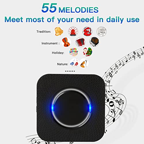 Pratico Campanello Impermeabile Senza Fili ️Con la tecnologia di connessione wireless (collegata tramite radio) e il livello di impermeabilità IP55, ti consente di scegliere la posizione del trasmettitore e del ricevitore ovunque tu abbia bisogno, come porta d'ingresso, officina, appartamento, vecchia casa, dormitorio, cassetta delle lettere, fabbrica, ufficio, ecc. È anche un sostituto molto ideale per la campana tradizionale che ha fallito e un allarme per pazienti anziani e infermieri.