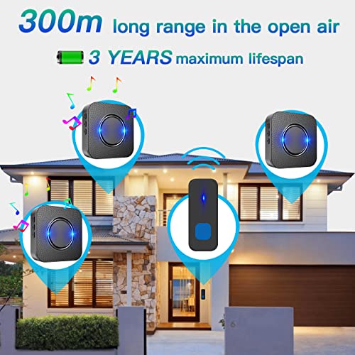PewinGo Campanello Wireless 55 Melodie e 5 Livelli di Volume Campanello Senza Fili da Esterno Impermeabile IP55, Gamma 300M con Indicatore LED