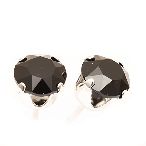 Pewterhooter - Orecchini a bottone in argento sterling 925, da uomo, con cristallo Swarovski Jet Black. In confezione regalo. Made in England. Bellissimo gioiello per persone molto speciali.