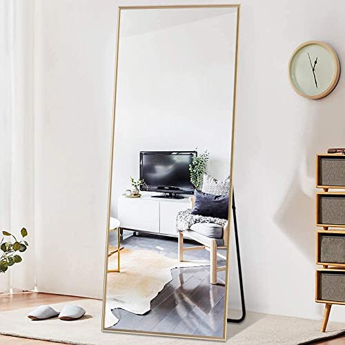 PexFix Specchio a tutta lunghezza 150,9 x 50,8 cm, moderno, elegante, con cornice in metallo, montaggio a parete, per camera da letto, ufficio (oro)