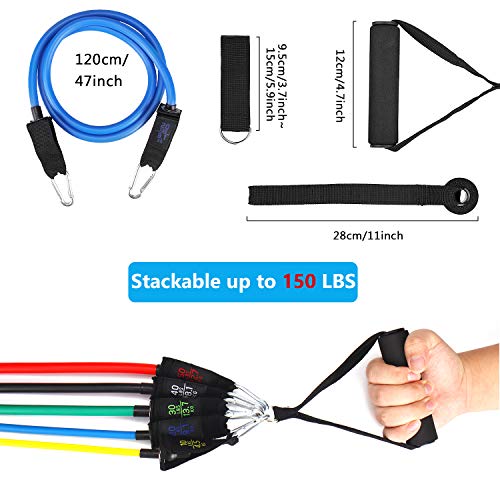 PEYOU Set di Fasce di Resistenza Fitness 150 lbs, Elastici Fitness di Lattice Naturale, 5 Bande di Resistenza con Maniglie, elastici per palestra, Kit Allenamento Casa per Yoga Pilates
