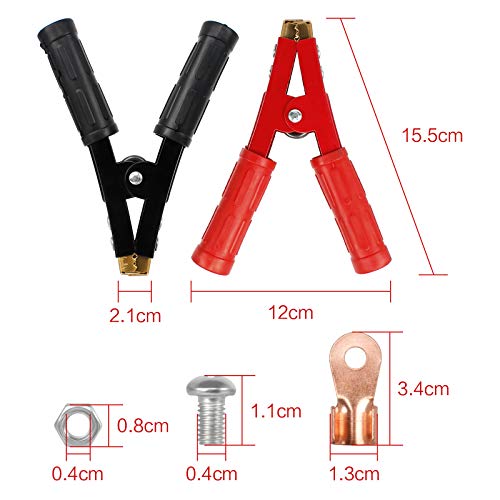 Quantità Sufficiente: Si ottengono 2 colori diversi di connettore a clip della batteria dell'auto potente da 1000 Amp. Uno è nero e l'altro è rosso. Include anche 2 estremità del cavo crimpate, 2 viti e 2 dadi.