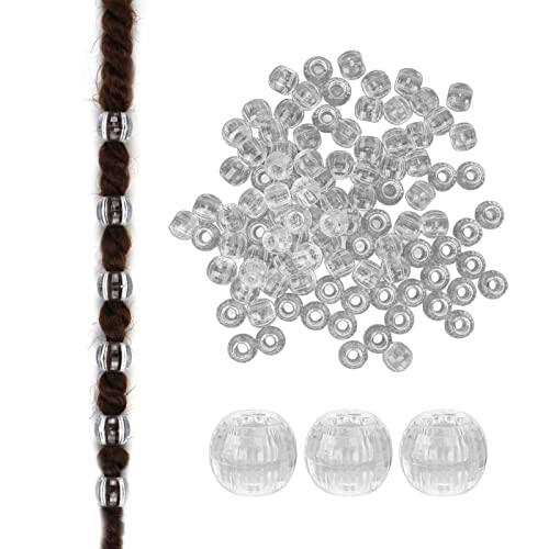 100 Pezzi 12mmDreadlocks Perline Accessori per Trecce di Capelli Fai-da-te Perline di Legno Dipinte Naturali a Foro Grande, Anelli per Trecce Cerchi per Capelli, Perline e Fermagli per(Trasparente)