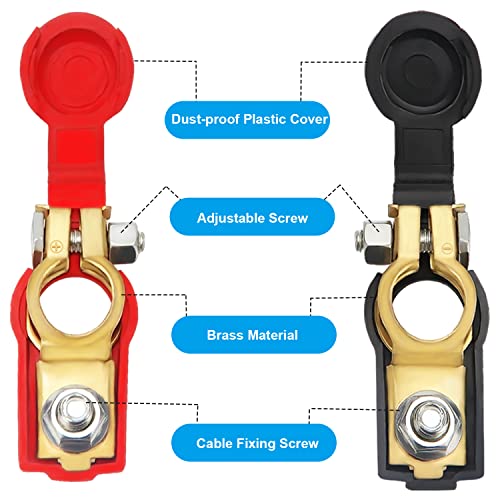 2 Pezzi 12V/24V Terminali Batteria a Sgancio Rapido Morsetti, VooGenzek Connettori di Batteria Positivi e Negativi con Coperchio Plastica, per Auto Camion Barca, Rosso E Nero