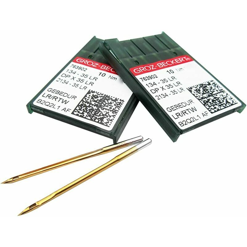 20 aghi Groz-Beckert in titanio per macchina da cucire (19/120) compatibili con PFAFF & ADLER Sistema di aghi: 134-35LR-Gebedur (aghi in pelle di titanio) Questi aghi si incrociano anche tra questi diversi sistemi di aghi: 134-35LR. 2134-35LR. DPX35LR. SY7227. Ti invieremo insieme la scatola di plastica per conservare gli aghi. Compatibile con ADLER: la maggior parte delle sottoclassi dai modelli 067. 068. 167. 168. 169. 204. 267. 268. 269. 367. 396. 467. 973 Compatibile con PFAFF: La maggior parte delle sottoclassi dei modelli 457. 481. 541. 542. 543. 544. 545. 546. 555. 594. 595. 596. 646. 1224. 1244. 1245. 1295. 1296. 1299. 1442. 1425. 1427. .1446.1455.3114.3116.3302.3303.3304.3334.3542.3561.3564.3571.3573.3802.3809.3812.3821.3834.3836.3840.4 gli aghi sono disponibili nelle seguenti misure. Si prega di selezionare la taglia. Singer taglia 16 (misura metrica 100) per tessuti di peso medio. Singer taglia 18 (misura metrica 110) per tessuti spessi. Singer taglia 19 (misura metrica
