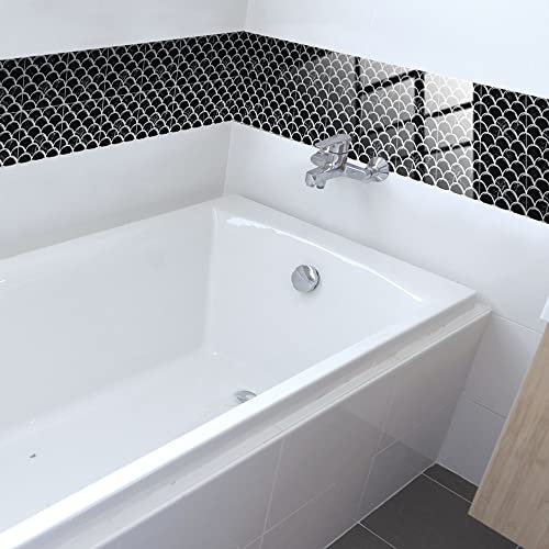 25 Pezzi 15x15 Adesivi per Piastrelle per Cucina e Bagno, in Bianco e Nero Con Scala di Pesce 3D, Impermeabili, a Prova di Olio, Autoadesivi, Adesivi da Parete Blacksplash