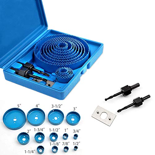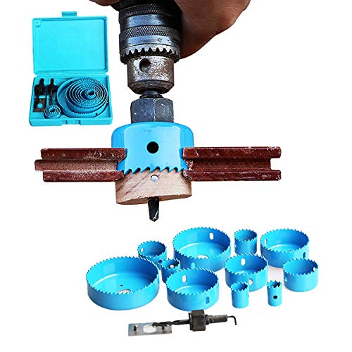 Set da 17 pezzi (19-127 mm) per sega a tazza con nucleo in legno, mandrini esagonali e piastra di installazione, utensili da taglio per downlight, cartongesso, plastica e PVC (Blu)