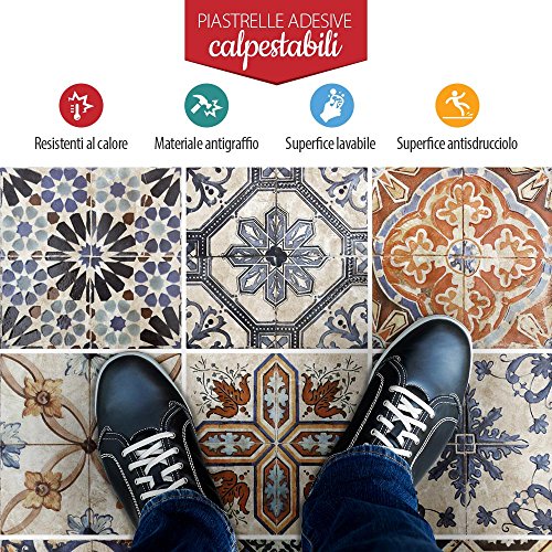 6 Pezzi 30x30 cm - PP00038 Decorazione Adesiva in PVC per Pavimenti su Materiale calpestabile - Stickers Design - Fantasia Azulejos