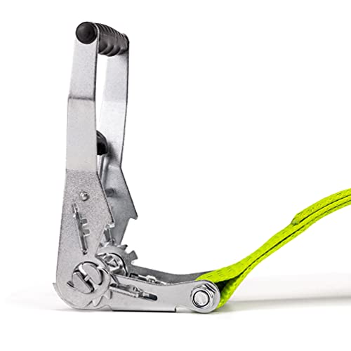 4 cinghie di tensione Ergolash, 8 metri, 5000 kg, con cricchetto e gancio, 50 mm. Con onda avvolgente brevettata.