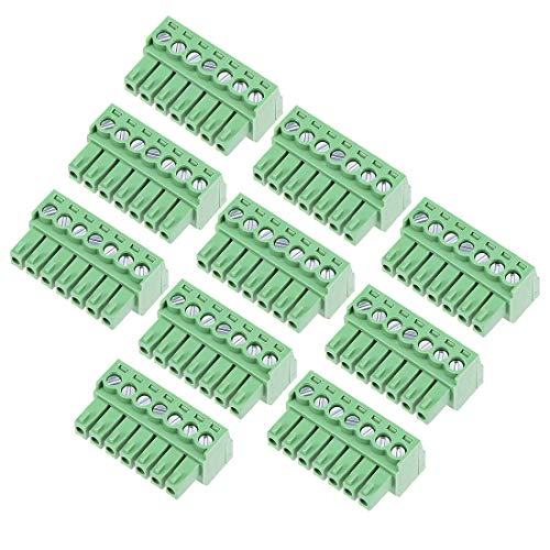 10 pezzi AC300 V 8 A 3,5 mm passo 7P Flat angolo Needle Seat Plug-In PCB Terminale Block Connector Verde