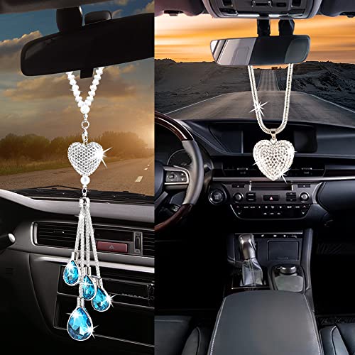 Materiale premium: i ciondoli con ciondoli appesi per auto bling sono realizzati con strass delicati, cristalli e acciaio inossidabile resistente e sono decorazioni uniche e alla moda per la tua auto.