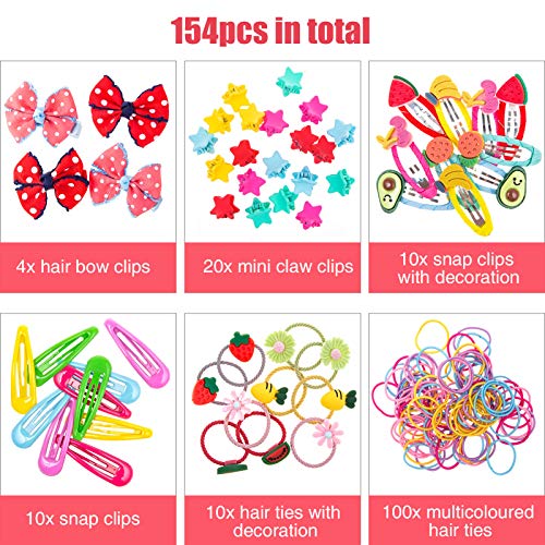 154 Pezzi Accessori per Capelli Bambina, Mollette Fermagli per Capelli e Elastici per Capelli Ragazze, Fiocco Pinza per Capelli da Neonata