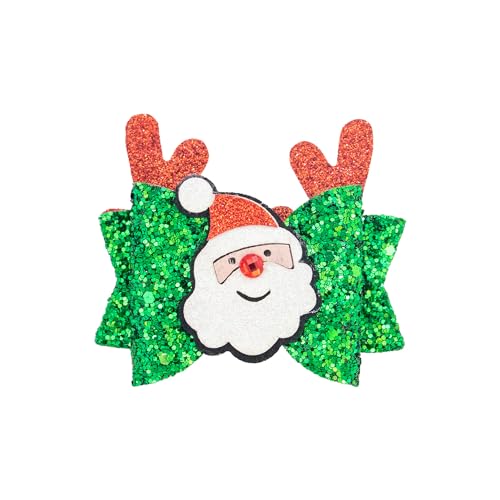 Materiale di sicurezza - Nastro carino con fiocchi per capelli in polvere glitterata con clip a coccodrillo argento e Babbo Natale, fermagli per capelli a forma di albero di Natale, adatti a tutti i vestiti. I "denti di alligatore"" della clip impediscono che scivoli via.