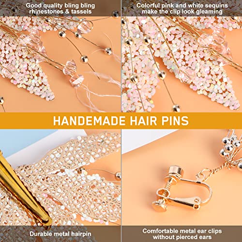 【Clip per le orecchie per tutti】 Il nostro set di accessori per capelli da sposa include anche un paio di clip per le orecchie. I fermagli per le orecchie sono costituiti principalmente da perline di cristallo rosa e perline di metallo, che formano un abbinamento perfetto con i fermagli per capelli. La clip per l'orecchio sembra bella e generosa, abbinata a una forcina per capelli dorata può far presentare alla sposa un temperamento nobile e affascinante.