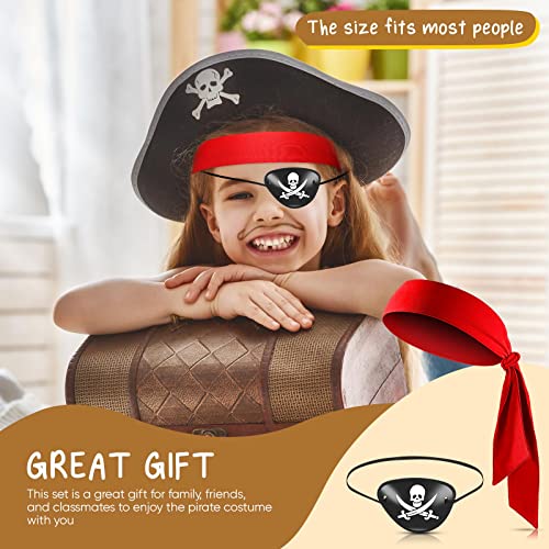 2 Pezzi Set di Accessori per Costume da Pirata e Capitano Include una Bandana da Pirata Rossa e Benda sull'Occhio da Pirata Nera per Uomini Donne Adulti Bambini Cosplay Festa a Tema Pirata