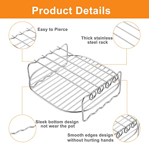 【Facile da pulire e mantenere】I nostri rack per friggitrice ad aria in metallo sono progettati per l'uso quotidiano e la comodità. Gli accessori da cucina della friggitrice ad aria sono lavabili in lavastoviglie, antiruggine e facili da pulire per assicurarti di poterli utilizzare in tutta tranquillità.