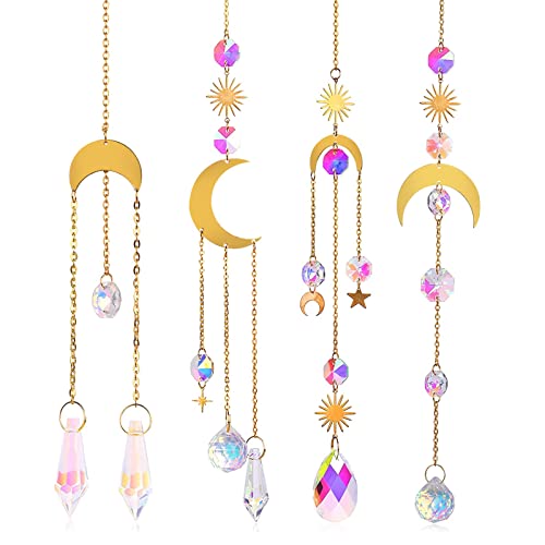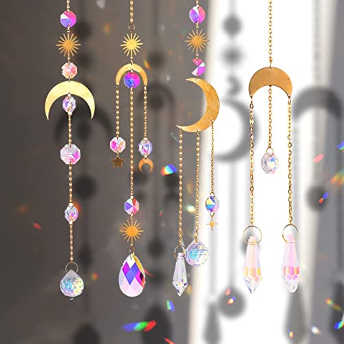 4 Pezzi Acchiappasole Cristallo,Suncatcher,Prisma Arcobaleno,Cristalli Decorativi Da Appendere,Acchiappasole Prisma per Giardino/Lampada da Soffitto/Soggiorno/Decorazione Esterna