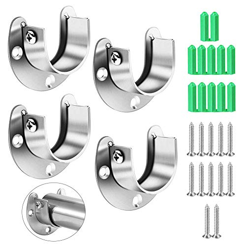 4 Pezzi in Acciaio Inox Closet Pole Sockets, Heavy Duty Closet Barra Flangia di Asta Supporto con Viti a Forma di U Facile Installazione e rimozione Rapida Adatti per della Tenda della Doccia 32mm
