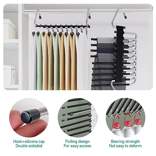 2 Pezzi - 9 in 1 Acciaio Inossidabile Grucce Pantaloni, Appendini Salvaspazio Armadio, Antiscivolo Appendiabiti per Pantaloni Magici, Porta Pantaloni per Armadio, Gruccia Pantaloni