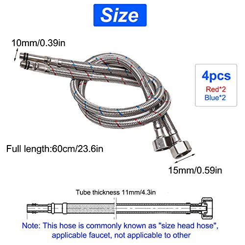 4 pezzi 304 Acciaio inox Standard Europeo Tubo Doccia Flessibile Tubo Flessibile, G3/8 x M10,Tubo Flessibile per Rubinetto da Bagno, Tubo Flessibile per Doccia, per Cucina, Toilette (4 pezzi)