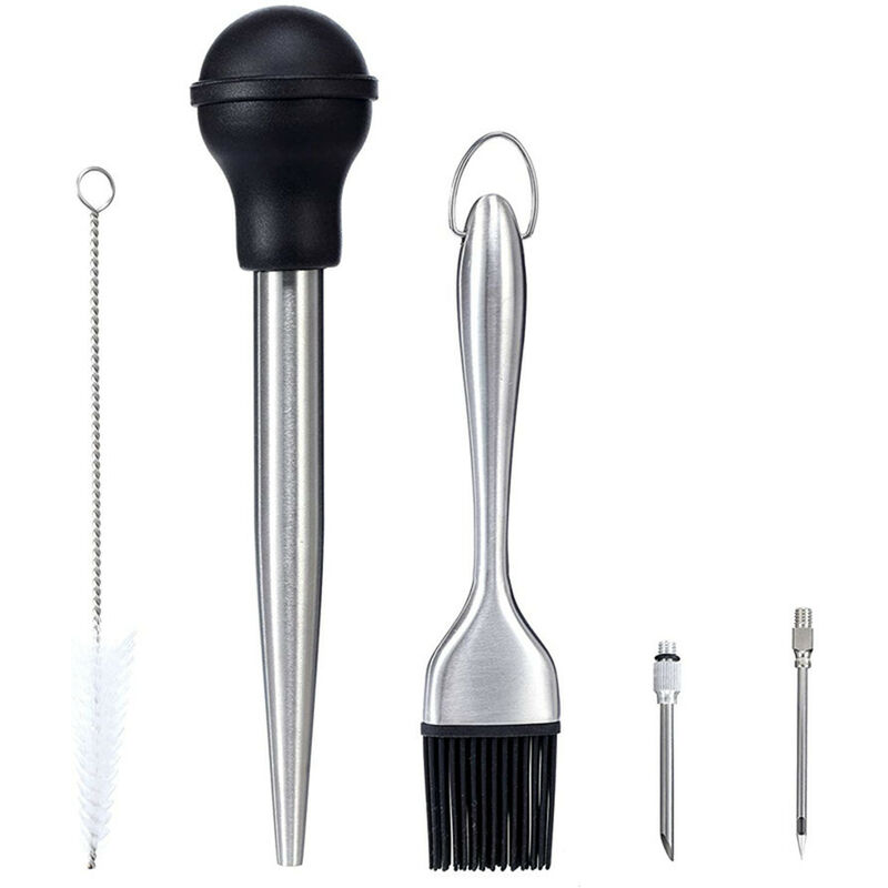 Base in metallo per cucinare in Turchia - Il nostro ugello per grigliare include 1 torta di tacchino in acciaio inossidabile, 2 aghi per ugelli in pietra, 1 pennello per salsa alla griglia in silicone e 1 pennello per la pulizia. Turkey Syringe Syringe Kit è l'assistente perfetto per aggiungere sapore alla cucina. [Appositamente progettato per te] La lampadina di aspirazione e la spazzola per griglia sono realizzate con materiali per uso alimentare con un'elevata resistenza al calore di 230 ° F. Il tubo della vernice e l'ago di decapaggio sono realizzati in acciaio inossidabile 304, che non è corroso o incrinato e non facile scade. Puoi rimuovere facilmente il gusto con una pressione confortevole. [Ampio utilizzo] La siringa per marinatura può essere ampiamente utilizzata in tacchino, maiale, pollo, anatra, pesce, manzo (compresa la bistecca) e quasi ogni tipo di carne. Immergi la deliziosa salsa, la salamoia o il succo di tacchino, quindi versa nel petto di tacchino o in qualsiasi