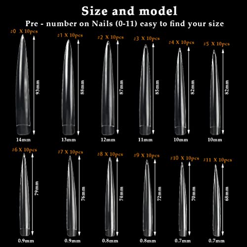 【Quantità e dimensioni】 - Ci sono 120 chiodi a punta super lunghi in 10 diverse dimensioni tra cui scegliere, 10 per ogni modello. Puoi facilmente tagliare e modellare le tue unghie in base alla lunghezza e alle dimensioni delle tue unghie.
