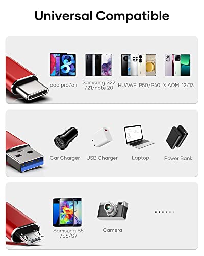 【Dispositivi compatibili】La porta USB 3.1 è ampiamente compatibile con i computer e i portatili dotati di porta USB Tipo-A. La porta USB C 3.1 Maschio può essere utilizzata per dischi rigidi, smartphone, tablet, Apple Watch serie 7, AirPods 3, MacBook Pro/Air 2022, iPad Pro 2021/2020, Samsung Galaxy S22/S21/S20, dischi flash e così via. La porta Micro USB è compatibile con Galaxy S7/S7+/S6/Edge/S3/S4, Note 5/4, Tab 4 3, LG G3/G4, Nexus 4/5, Motorola, Kindle e altri dispositivi Micro USB 2.0.