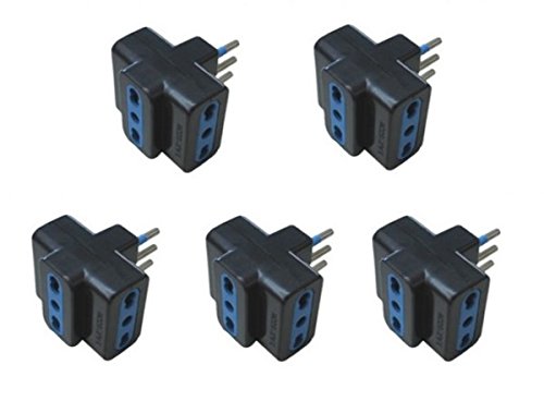 Set 5 pezzi adattatore tripla presa con spina 10a e prese bipasso universali nere