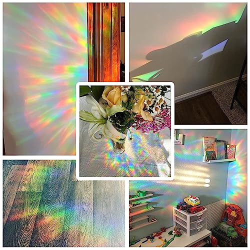 【Facile da Attaccare & Staccare】Vetrofanie prisma Adotta l'adsorbimento elettrostatico per aderire al muro senza colla, comodo da incollare e sostituire e non lascerà alcun residuo dopo la rimozione. Devi solo strappare la cover posteriore di adesivi per finestre, pulire delicatamente il vetro e incollarlo sul vetro con acqua.