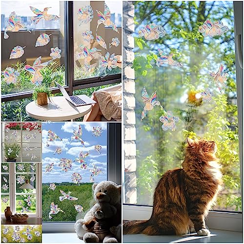 42 Pezzi Adesivi Anti Collisione Vetri,Arcobaleno Adesivi per Finestre per Uccelli Strike,Uccelli Anticollisione Avviso,Anti-Collisione Statico Arcobaleno Adesivi,Anticollisione per Uccelli Prismi