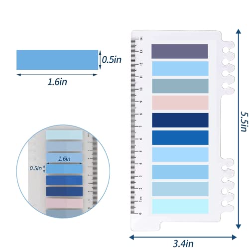 1600 Pezzi Adesivi Indice, 8 Pads PET Segnapagina Adesivi Con Righello, Schede Indice Appiccicose, Nota Scrivibile Etichette, Sticky Notes Per La Lettura Tab Classificare I File