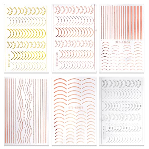 6 Pezzi Adesivi per la linea delle unghie, Adesivi 3D della linea di nail art in metallo, Nail Sticker Autoadesivo, Nail Art Stripe Tape, DIY Nail Art Line Sticker, Decorazione Nail Art