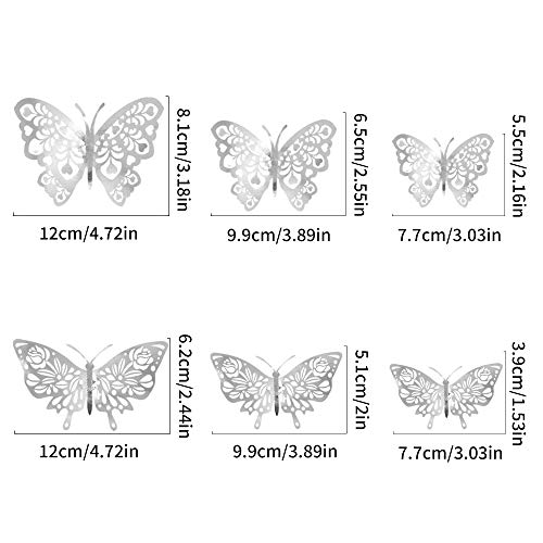 24 pezzi adesivi murali farfalla, CattleyaHQ adesivi murali farfalle 3D misti, per casa, camera da letto, decorazione cameretta (argento)