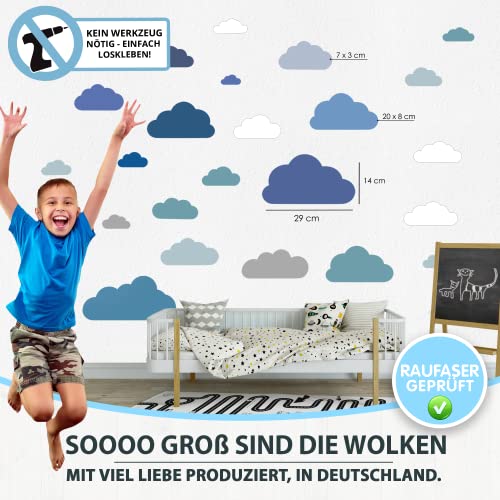 Set da 20 pezzi di adesivi murali nuvole camera da letto - adesivi murali truciolo, colori pastello, adesivi carta da parati per bambini su cui attaccare - pellicola da parete, bambini (blu)