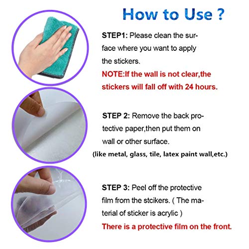 [AMPIA APPLICAZIONE]: È l'ideale per decorare luoghi diversi come lo sfondo della TV, la parete del divano, l'armadio, il congelatore, l'armadio, la scuola materna, il bagno, la camera da letto o l'ufficio. Funziona su superfici molto lisce, pulite e asciutte, come metallo, vetro, piastrelle, pareti di vernice al lattice per rendere la tua stanza più luminosa.