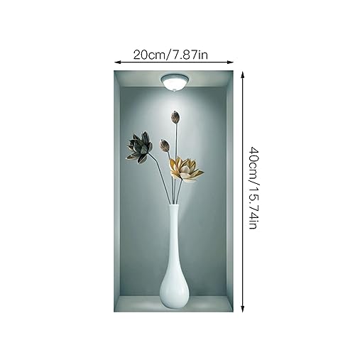 3 Pezzi Adesivi Da Parete 3D Vaso Moderno Bianca Vasi Adesivo Murali 3D Vaso Poster per Soggiorno,Bagno,Cucina(20 x 40 cm)