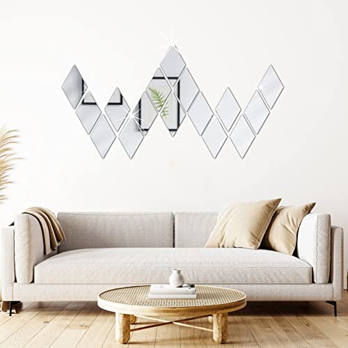 16 Pezzi Adesivi da Parete a Specchio, Specchio Forma di Diamante Flessibile Adesivo, Specchio in Materiale Morbido per Decorazione Murali Casa.Appiccicoso Specchio da Piastrelle Parete (9 x 9 cm)