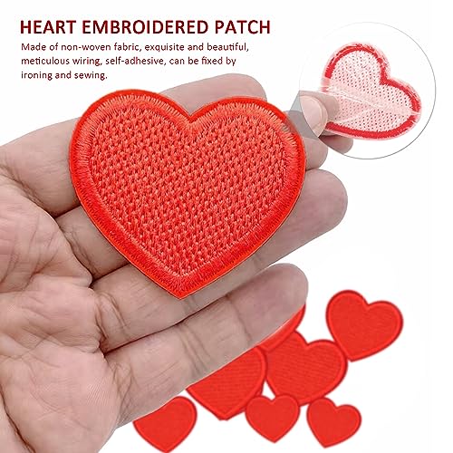 Ampia applicazione: è possibile utilizzare queste macchie rosse a forma di cuore per coprire fori o decorare vestiti, per riparare fori o aggiungere creatività a vestiti, asciugamani, coperte, gilet, giacche, jeans, camicie, felpe con cappuccio, zaini, zaini, calze, scarpe, ecc. È adatto anche per lavori di bricolage, scrapbooking e altre decorazioni fai da te.