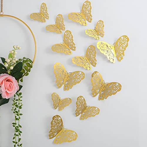 36 Pezzi 3D Adesivo da Parete Farfalla Farfalla Decorative da Parete per la Camera da Letto e la Festa di Compleanno(oro argento oro rosa)