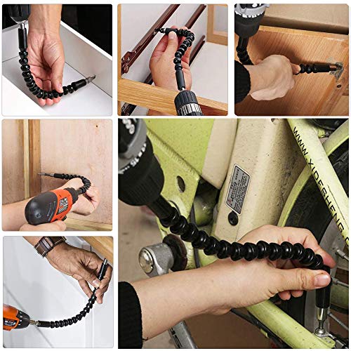 Sicuro e affidabile La punta da trapano è realizzata in metallo e plastica speciale, che può rendere la punta più solida e stente per un uso a lunga . L'albero interno ha una vasta gamma di rotazione, quindi quando l'albero interno ruota, l'involucro nero flessibile protegge le mani dal male e completa perfettamente il tuo lavoro.
