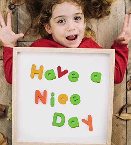 APPRENDIMENTO DI LETTERE E NUMERI— Le piccole menti desiderano crescere ed imparare! Questo set di alfabeto magnetico, con 52 ettere, 20 numeri e 8 simboli, aiuterà tuo figlio a riconoscere colori, forme e numeri;