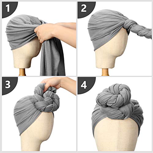 La confezione include: 2 sciarpe avvolgenti per capelli, 3 in 1, turbante, sciarpa e sciarpa, supporta una varietà di acconciature e offre il giusto stile
