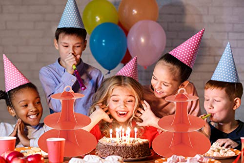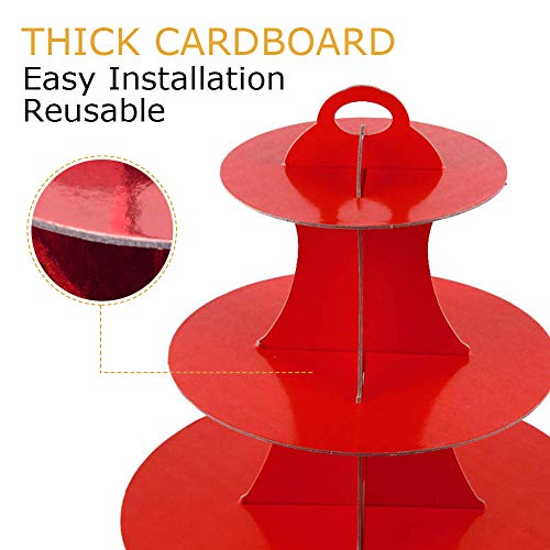 2 Pezzi Alzata per Cupcake Cartone 3 Piani, USA e Getta Rosso Supporto per Dessert Torte per Baby Shower, Compleanni, Feste