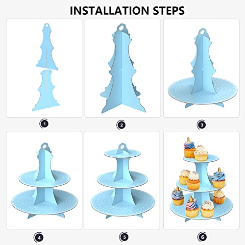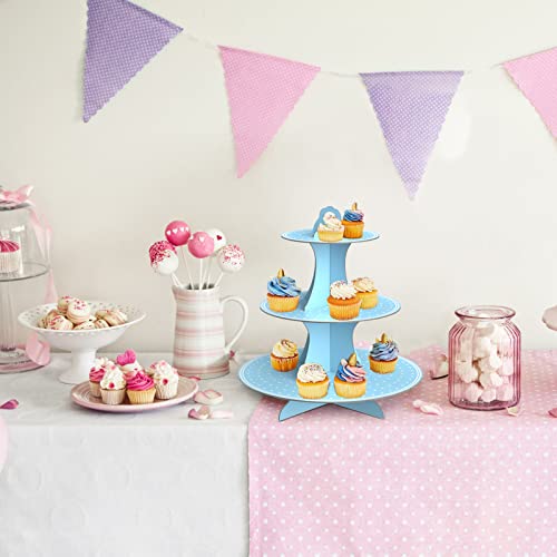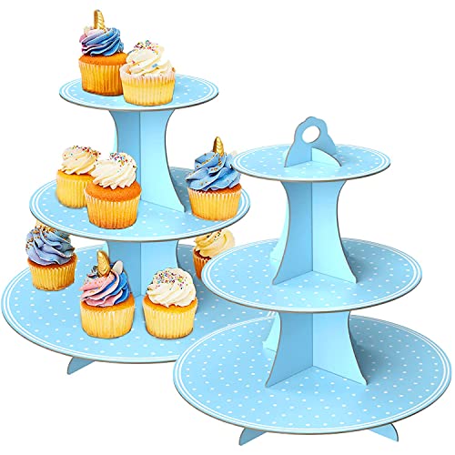 2 Pezzi Alzata per Cupcake Cartone 3 Piani, Usa e Getta Pois Blu Supporto per Dessert Torte per Baby Shower, Compleanni, Feste