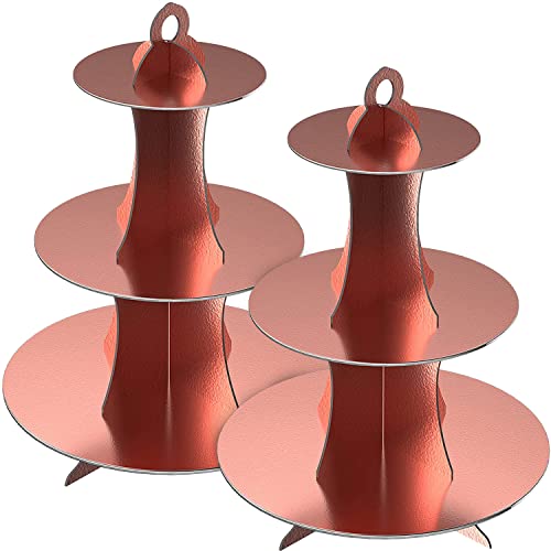 2 Pezzi Alzata per Cupcake Cartone 3 Piani, USA e Getta Oro Rosa Supporto per Dessert Torte per Baby Shower, Compleanni, Feste
