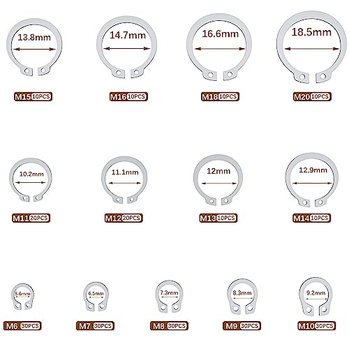 250 Pezzi Anelli di Arresto Radiale in Acciaio Inox,Anelli Elastici C-Clips