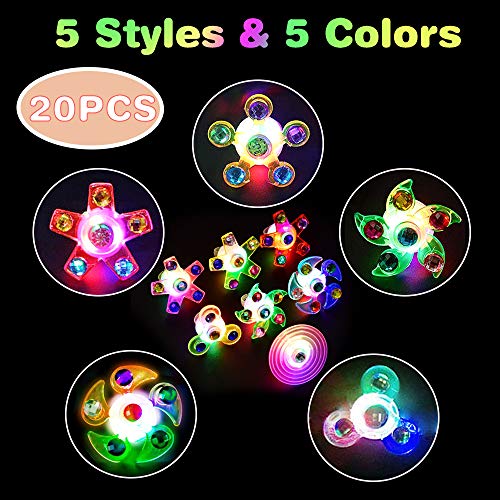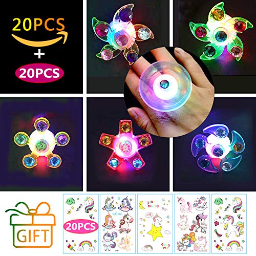 Pacchetto perfetto: 20 LED Gyro Ring (5 stili e colori) + 20 adesivi per tatuaggi Unicorn.