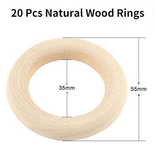 20 pezzi Anelli in Legno Naturale, Bambino Teether Anello 55 mm/5,3 cm Anello Dentizione in Legno, Rotonde Anelli in Legno Per fai da te Artigianato, Creazione Gioielli, Connettori Pendenti ad Anello